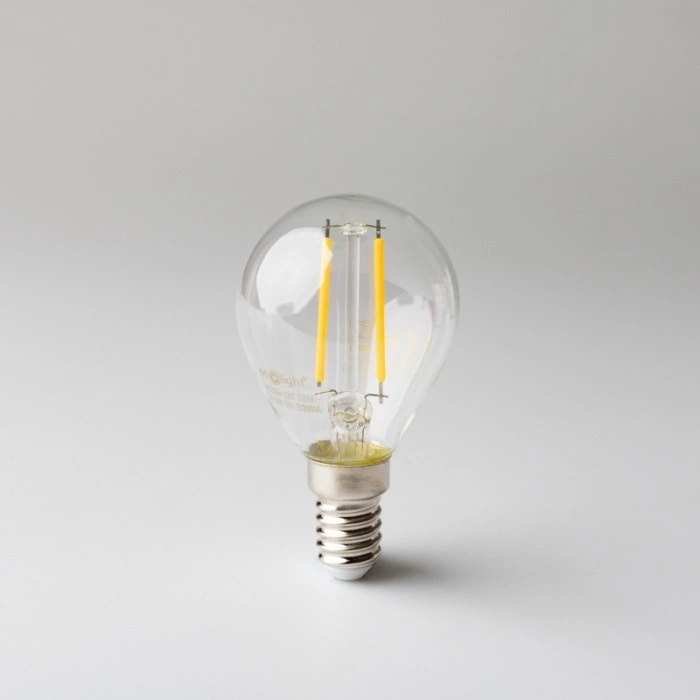Entdecken Sie eine neue Dimension der Beleuchtung mit der LED-Glühbirne Ball P45 E14 mit 2W und einem Lichtstrom von 240lm, die warmes, angenehmes Licht in Ihr Zuhause bringt. Dank der FILAMENT-Technologie und einer extrem hohen Lichtausbeute von 120 lm/W verbindet diese transparente Glühbirne Modernität mit einem traditionellen Look. Mit einer Farbtemperatur von 2700K und einem Lichtabstrahlungswinkel von 360° sorgt sie für eine gleichmäßige Beleuchtung, die die Gemütlichkeit eines jeden Raumes unterstreicht.