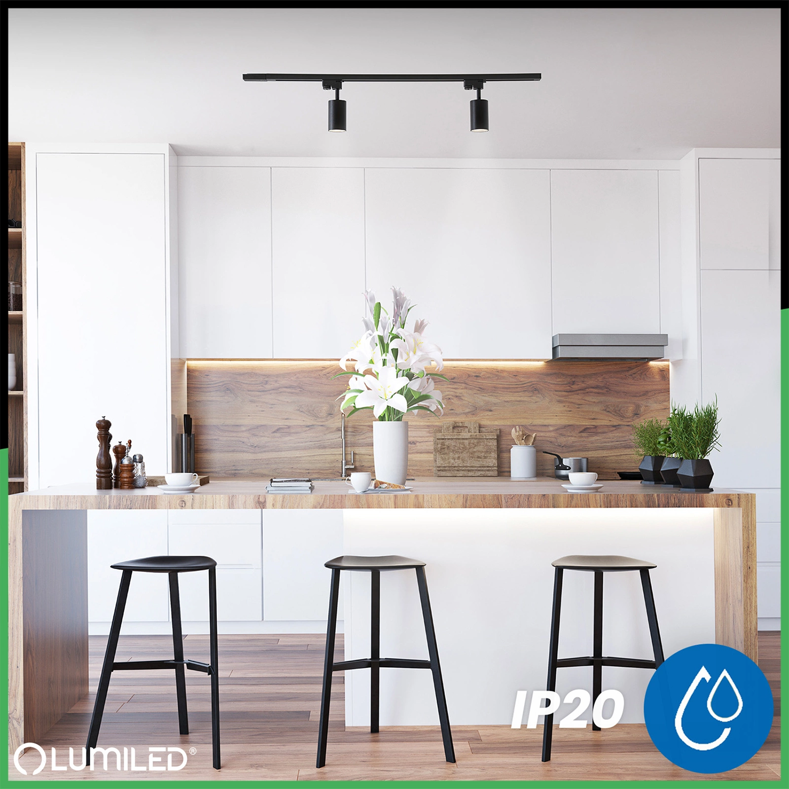 Beleuchtungsschienenset 1 m Schiene + 2x SAGI GU10 Schienenstrahler Schwarz LUMILED