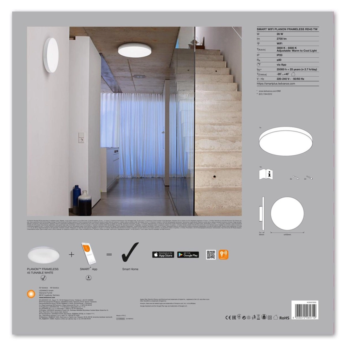 - Steuerbar über die LEDVANCE SMART+ App (mit Android mind. 8.0 oder iOS 14.0).