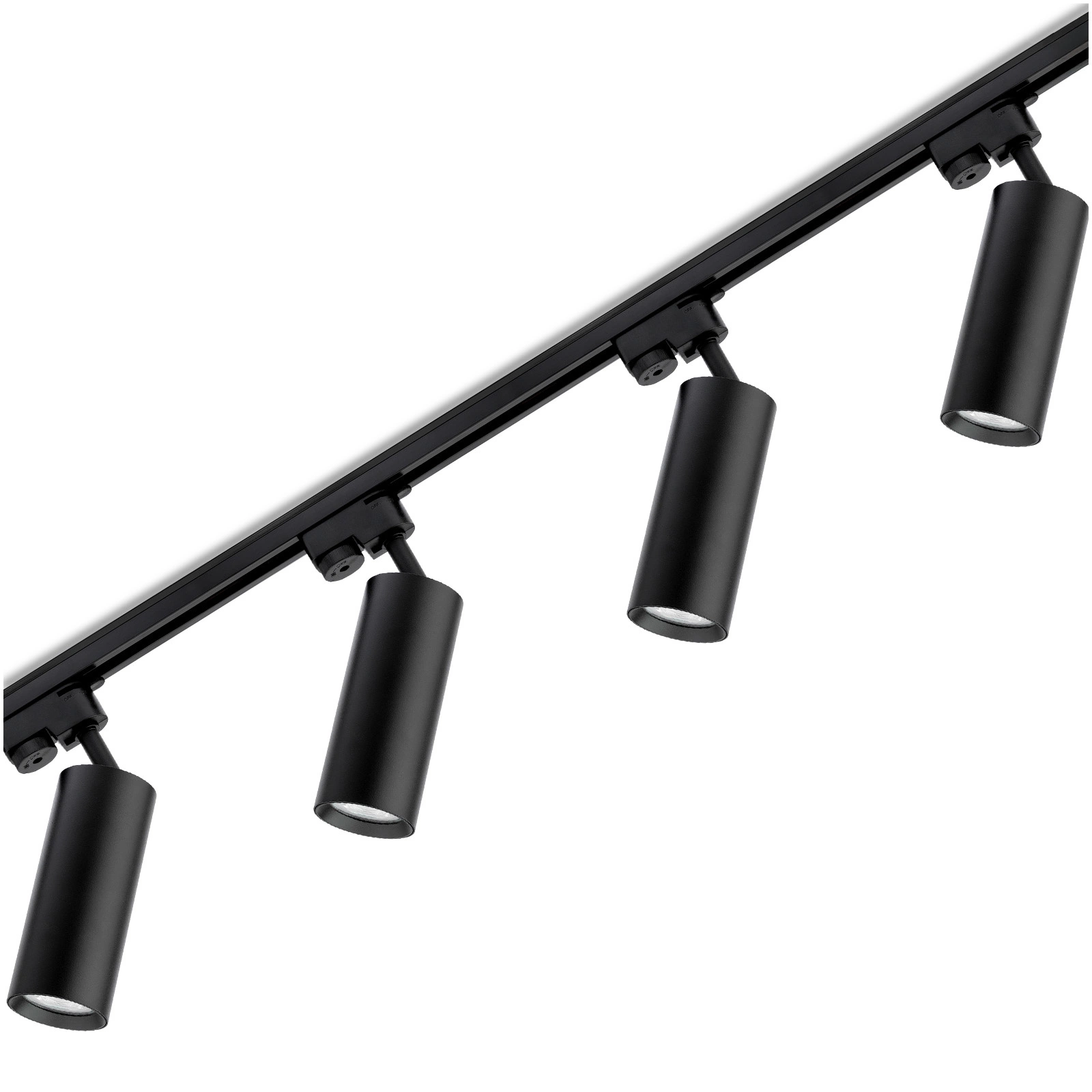 Beleuchtungsschienen-Set, 2 m Schiene + 4 x RITI GU10 schwarze LUMILED-Schienenleuchte