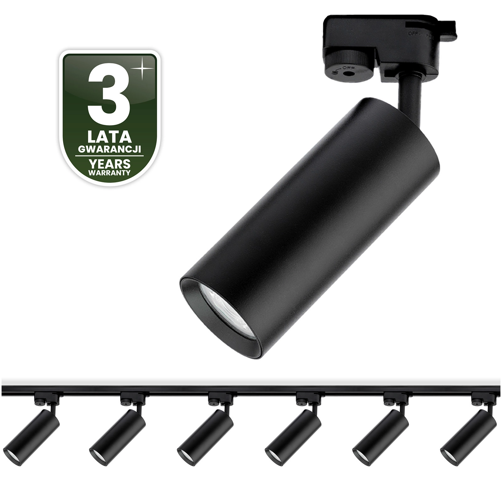 Beleuchtungsschienen-Set, 2 m Schiene + 6 x LED-Schienenstrahler, GU10-Lampe, Schwarz