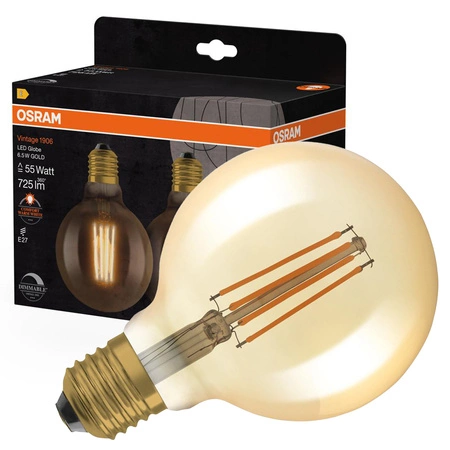 2x Dekorative Leuchtmittel E27 G95 6,5W = 55W 725lm 2400K warm 300° Filament dimmbar OSRAM Vintage 1906