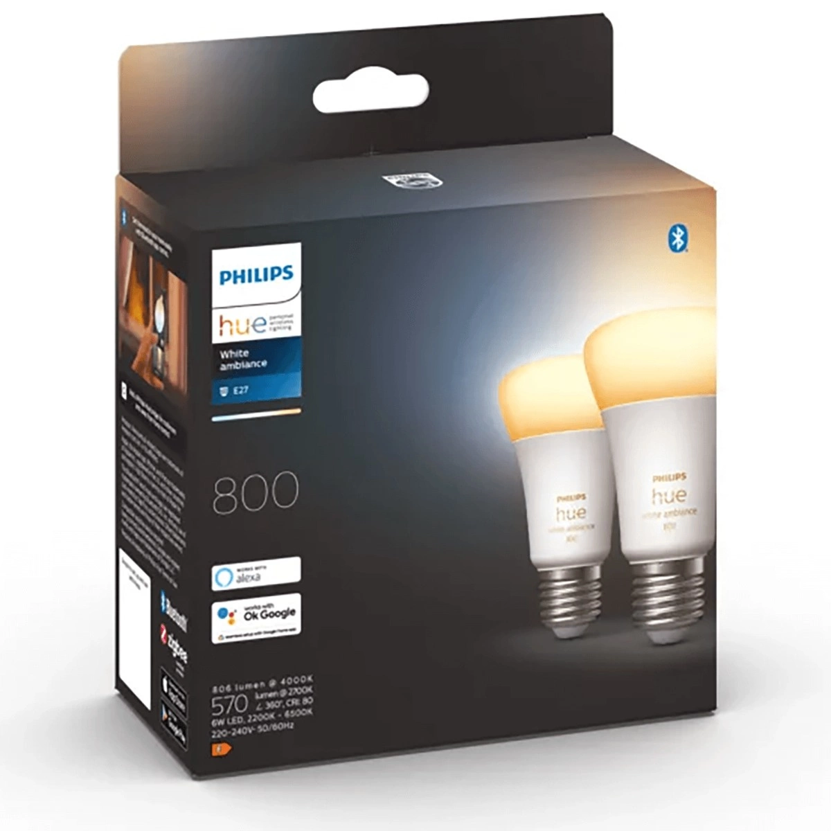 2PAK LED-Glühbirne E27 A60 6W CCT PHILIPS HUE White & Ambiance Bluetooth Zigbee