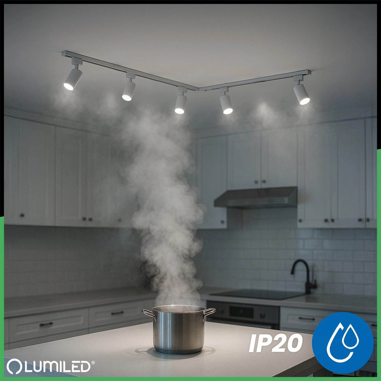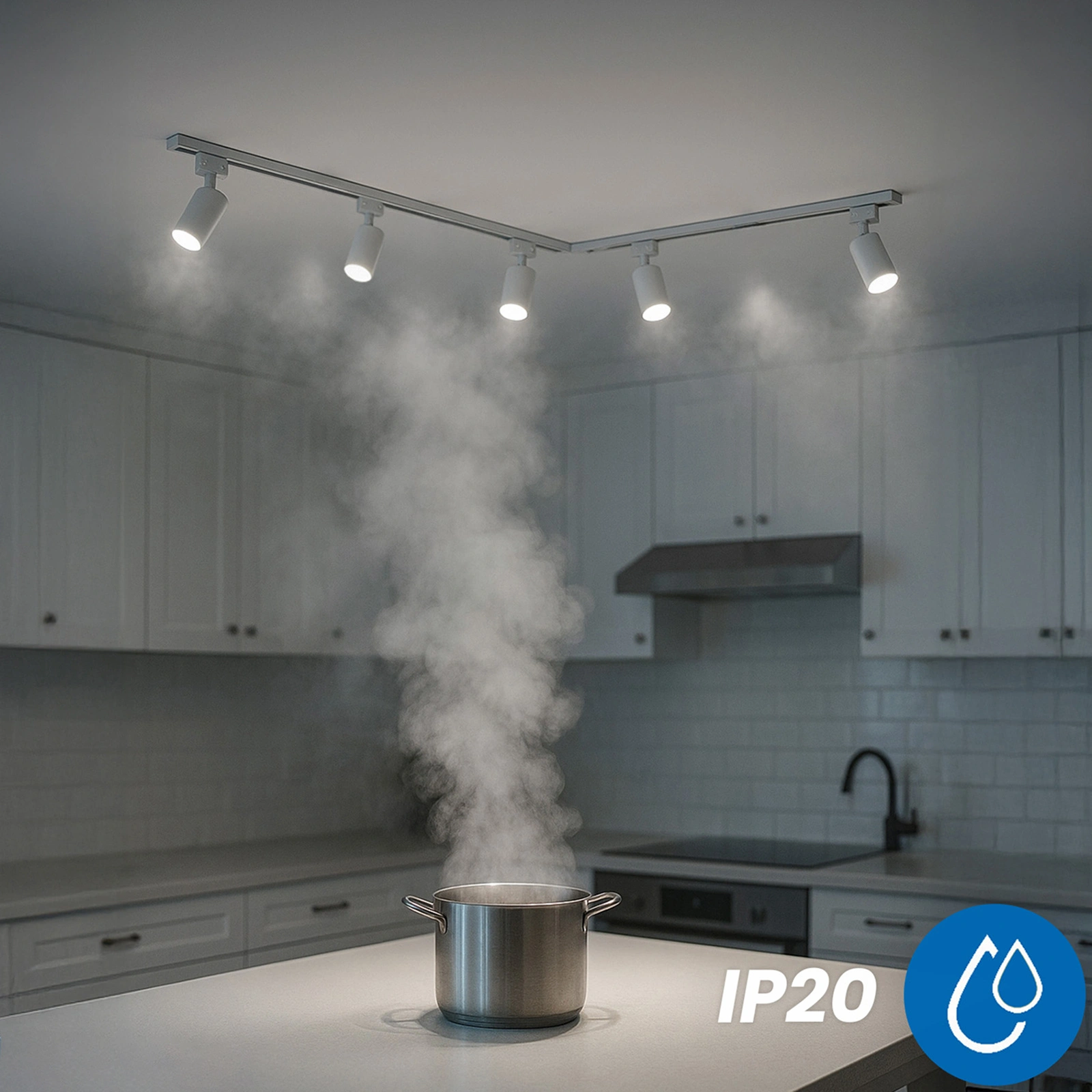Das Set beinhaltet einen weißen Lichtstreifen 2 m und 1 m + L-Winkelverbinder und 5 Schienenreflektoren in Weiß und Gold aus hochwertiger Aluminiumlegierung. Das Set ist für die Aufputzmontage vorgesehen . Der Vorteil der mitgelieferten Reflektoren ist die Möglichkeit, jedes Leuchtmittel mit GU10-Gewinde mit einer maximalen Leistung von maximal 30 W einzubauen. Dank der Verwendung von Schienen können wir die Beleuchtung im Raum je nach unseren aktuellen Veranlagungen steuern. Mit diesem Set können wir mithilfe eines L-Steckers eine interessante Beleuchtungsanordnung schaffen, indem wir die Stromschienen schräg montieren. Wir können die Schiene auch auf jede beliebige Länge zuschneiden und die Reflektoren können an einer beliebigen Stelle der Schiene angebracht werden.