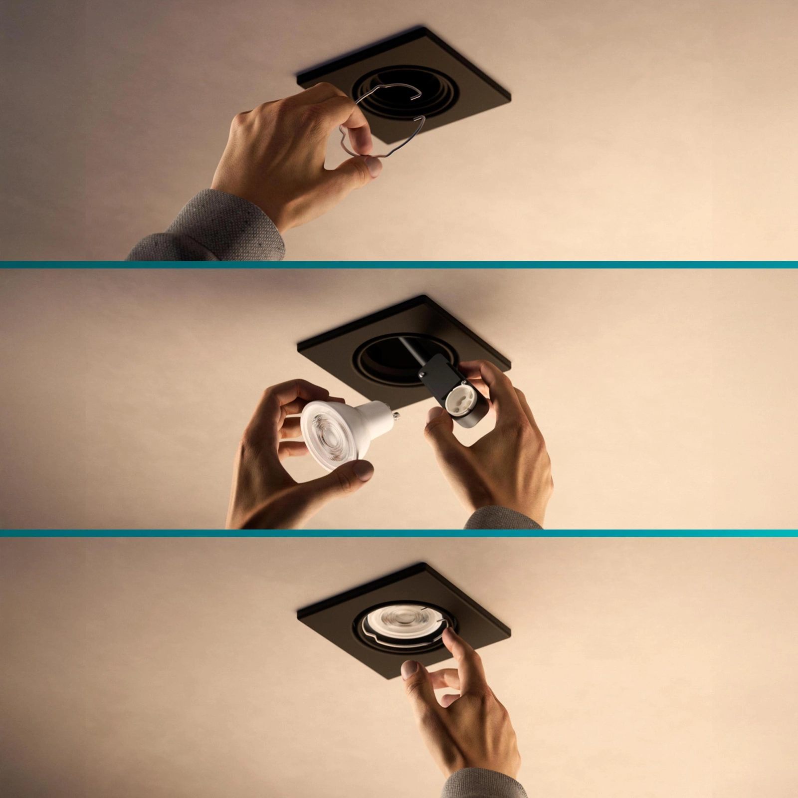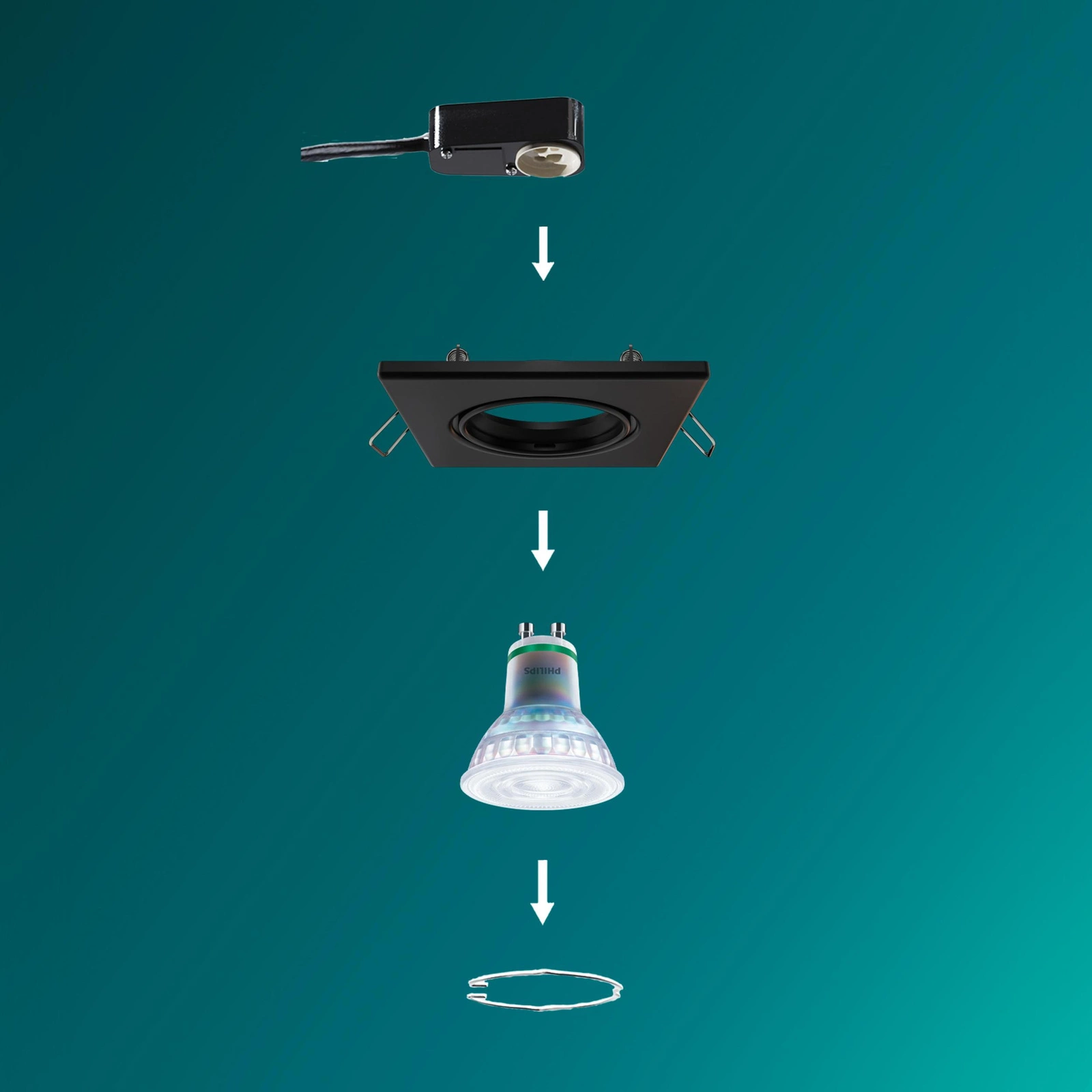 3x LED GU10 Einbauleuchte Aluminium Quadratisch Schwarz Peridot Philips