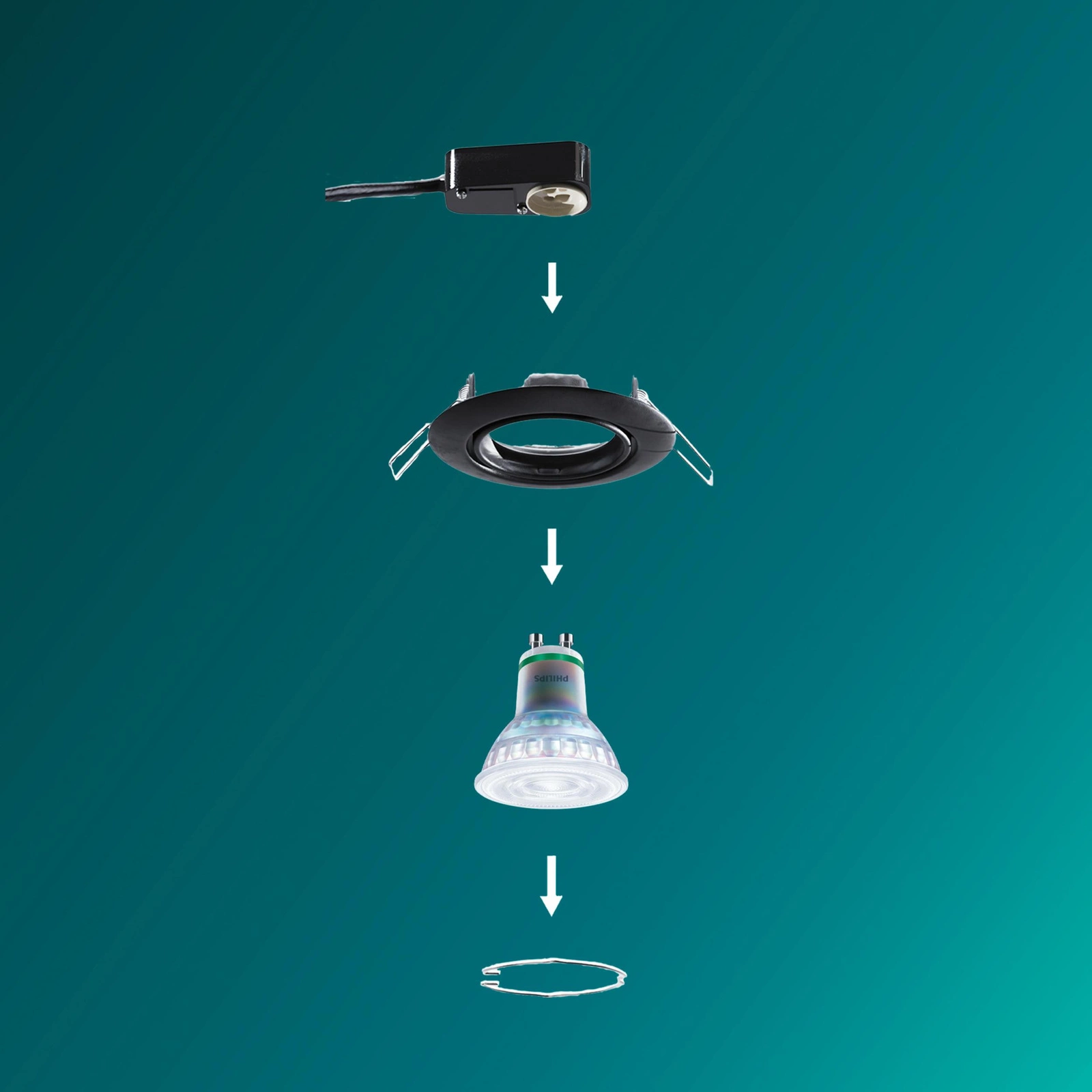 Installieren Sie moderne Beleuchtung in Ihrem Zuhause mit einem Set aus 3 LED GU10 Deckeneinbauleuchten von Philips! Das Modell Peridot in schlichtem, mattem Schwarz fügt sich perfekt in die moderne Inneneinrichtung ein und passt sowohl ins Wohnzimmer als auch in die Küche und ins Schlafzimmer. Die aus hochwertigem Aluminium gefertigten Leuchten verleihen nicht nur Eleganz, sondern sind auch langlebig.