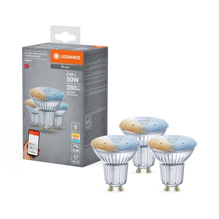 Die Ledvance GU10 Reflector LED-Lampe ist eine moderne Beleuchtungslösung, die Energieeffizienz und Funktionalität vereint. Mit 4,9 W und einem Lichtstrom von 350 lm ist sie eine ideale Alternative zu herkömmlichen Glühbirnen. Das Produkt bietet eine variable Lichtfarbe(CCT), so dass die Beleuchtung an die aktuellen Bedürfnisse und die Atmosphäre im Raum angepasst werden kann.