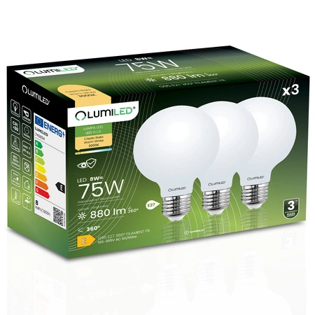 Die Glühbirne strahlt ein gleichmäßiges , warmes Licht (3000K) aus, das in Ihrem Zuhause für eine gute Sicht sorgt und eine entspannende, warme Atmosphäre schafft. Der CRI (Farbwiedergabeindex) liegt bei über 80 und sorgt für ein lebendigeres und natürlicheres Licht. Darüber hinaus verhindert der milchige Schirm eine Blendung und verursacht keine Verfärbung des Schirms. Der Vorteil der LED-Lampen ist die Vielfalt der Lichtfarben, die es uns ermöglicht, den Raum an unsere Bedürfnisse anzupassen.