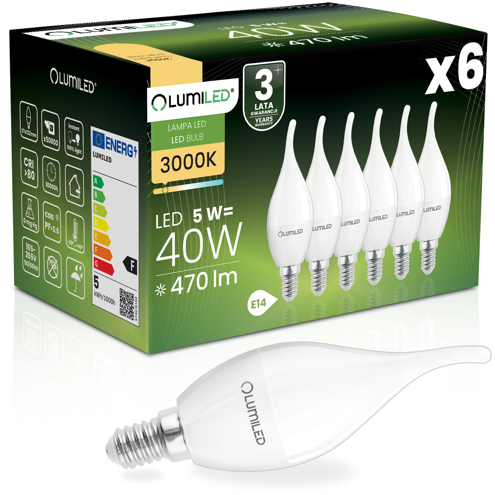 Das 6x 5W LED-Glühbirnen-Set der Marke Lumiled ist die perfekte Wahl für alle, die eine energieeffiziente und dennoch angenehme Beleuchtung für ihr Zuhause suchen. Sie strahlt eine warme Farbe von 3000K aus, die eine gemütliche Atmosphäre schafft und perfekt für das Wohn-, Schlaf- oder Esszimmer ist. Der kerzenförmige BA35-Sockel E14 passt in Wandleuchter, Kronleuchter und dekorative Lampen. Die Lichtleistung von 470 lm bietet helles, angenehmes Licht auf dem Niveau einer herkömmlichen 40W-Glühbirne, und der Abstrahlwinkel von 180° beleuchtet den Raum effektiv und ohne Blendung.