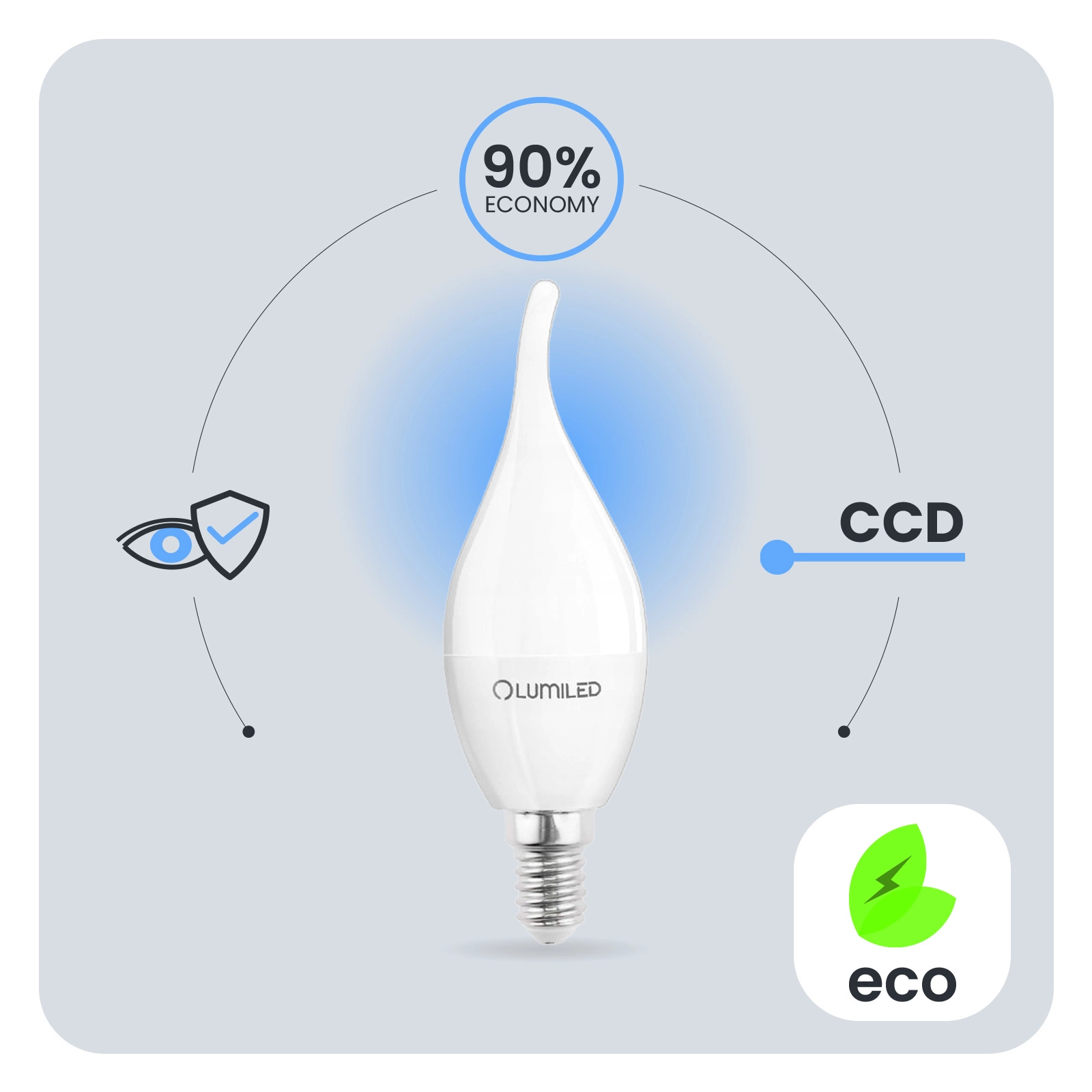 - Dekorative Beleuchtung: perfekt für dekorative Lampen, Wandlampen und Kronleuchter, dank ihrer BA35-Kerzenform und dem E14-Sockel.
