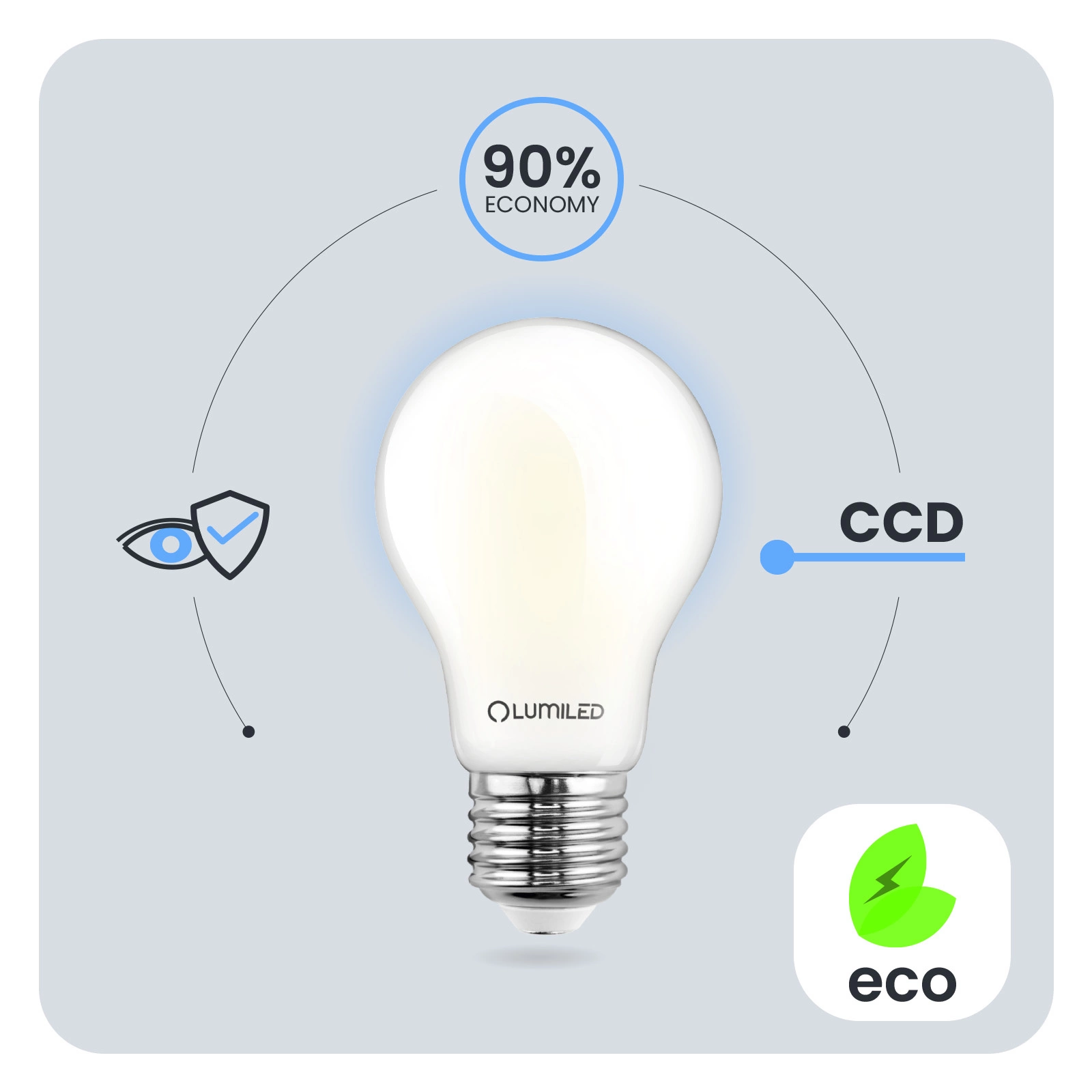 Der in der LED-Glühbirne verwendete CCD-Inverter macht die Glühbirne widerstandsfähig gegen Einbrüche und Spitzen in der Netzspannung. Das Licht flackert und zittert nicht. Der CCD-Konverter sorgt dafür, dass die Glühbirne über einen langen Zeitraum hinweg einwandfrei funktioniert. Bei der Entwicklung der LUMILED-Glühbirnen wurde an den Benutzer gedacht. Eine schlechte Beleuchtungsqualität kann zur Ermüdung der Augen führen. Deshalb verfügen unsere Lampen über die technische Entwicklung Eye Safe, um in jedem Raum eine angenehme und augenfreundliche Beleuchtung zu gewährleisten.