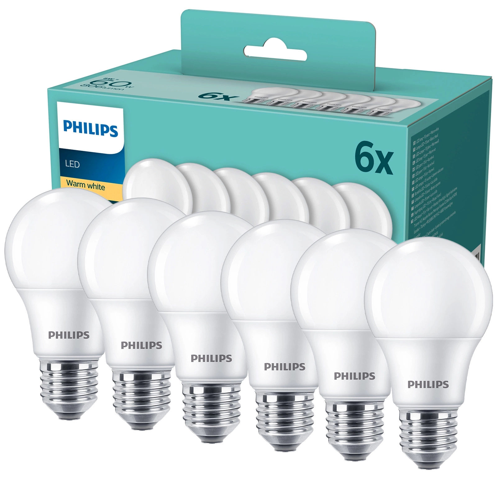 Sorgen Sie für optimale Beleuchtung in jedem Raum mit einem Set aus sechs Philips LED-Lampen mit E27-Sockel. Jede 8-Watt-Glühbirne entspricht einer herkömmlichen 60-Watt-Glühbirne, d. h. sie verbraucht weniger Energie und bietet einen beeindruckenden Lichtstrom von 806 lm. Mit einer Farbtemperatur von 2700 K erzeugen sie ein angenehmes, warmes Licht, das ideal für Wohnräume ist und eine gemütliche und entspannende Atmosphäre schafft.