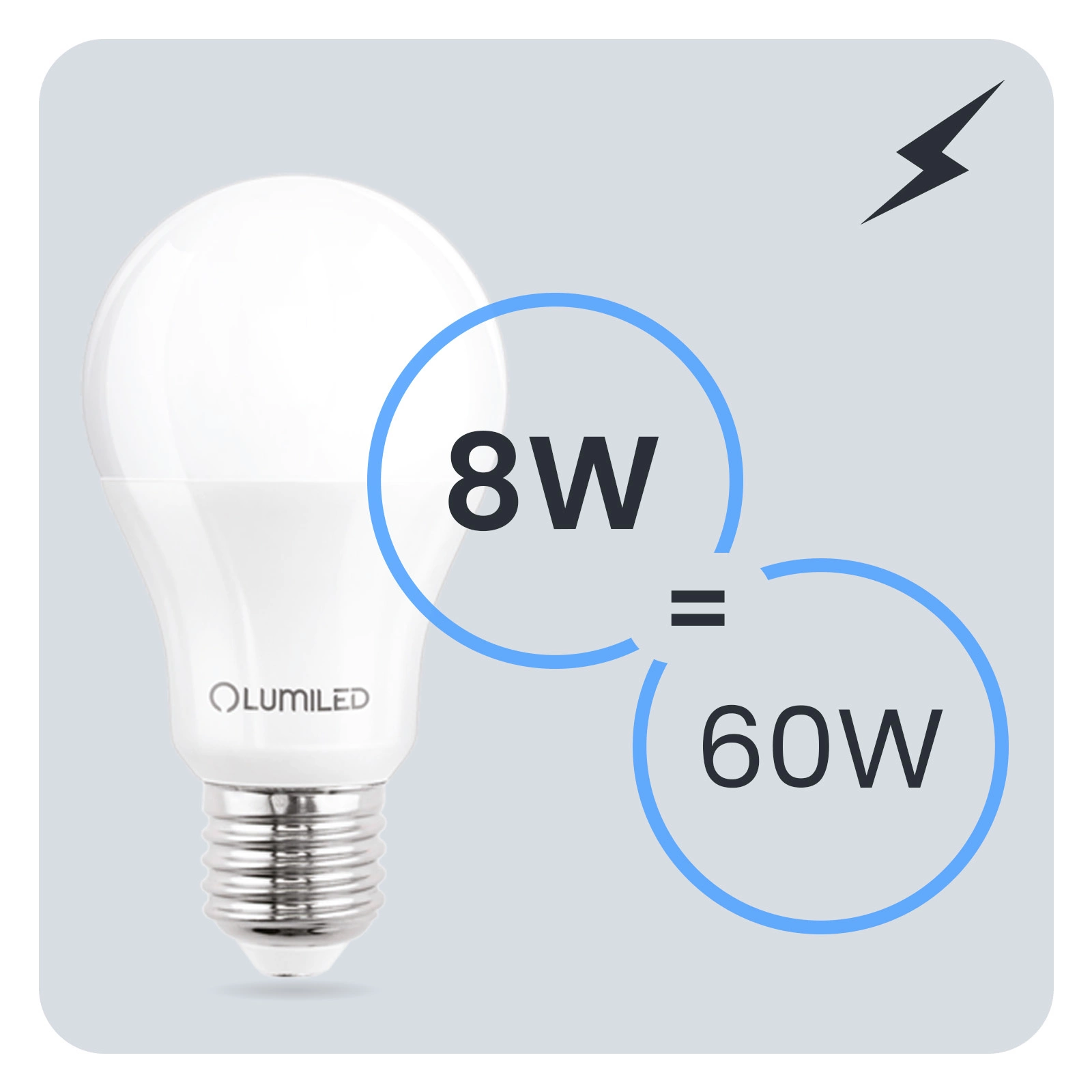 - Nur 8 W Stromverbrauch - helles Licht, das die herkömmlichen 60 W bei minimalem Energieverbrauch ersetzt und jeden Tag Einsparungen ermöglicht.