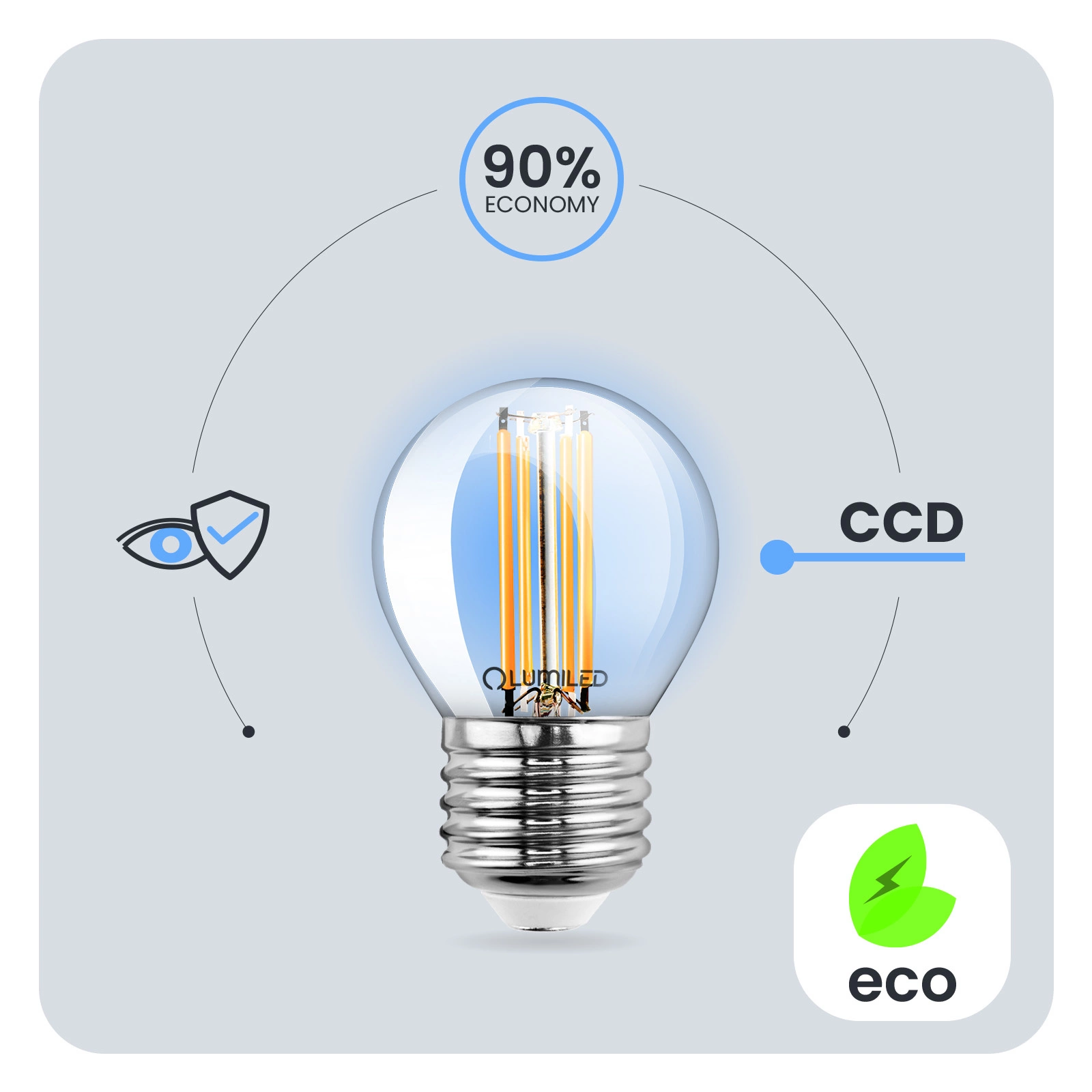 Der in der LED-Glühbirne verwendete CCD-Inverter macht die Glühbirne widerstandsfähig gegen Einbrüche und Spitzen in der Netzspannung. Das Licht flackert und zittert nicht. Der CCD-Konverter sorgt dafür, dass die Glühbirne über einen langen Zeitraum hinweg einwandfrei funktioniert. Bei der Entwicklung der LUMILED-Glühbirnen wurde an den Benutzer gedacht. Eine schlechte Beleuchtungsqualität kann zur Ermüdung der Augen führen. Deshalb verfügen unsere Lampen über die technische Entwicklung Eye Safe, um in jedem Raum eine angenehme und augenfreundliche Beleuchtung zu gewährleisten.
