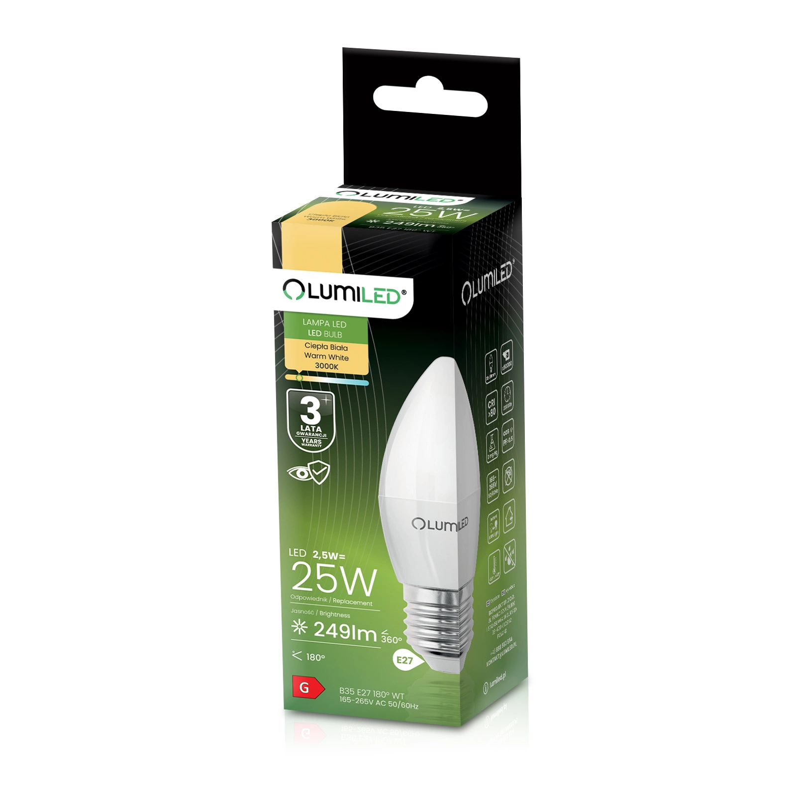 Dieser Satz von 6x LED-Glühbirnen der renommierten Marke LUMILED mit E27-Sockel und 2,5W ist ein hervorragender Ersatz für herkömmliche 25W-Glühbirnen und bietet Energieeinsparungen und eine längere Lebensdauer. Sie emittiert Licht mit einem Lichtstrom von 249 Lumen und einer warmen Lichtfarbe von 3000K und ist damit ideal für die Innenbeleuchtung, wo eine weiche und angenehme Lichtfarbe gewünscht wird. Der Abstrahlwinkel von 180° ermöglicht eine breite Streuung des Lichts und leuchtet den Raum effektiv aus. Dank ihrer hochwertigen Verarbeitung hat sie eine Lebensdauer von bis zu 15.000 Stunden, was einer langjährigen Nutzung entspricht. Außerdem arbeitet sie in einem weiten Spannungsbereich von 165-265 V und ist für den Einsatz bei Umgebungstemperaturen von -20°C bis +40°C geeignet. Eine ideale Wahl für alle, die Wert auf Energieeinsparung und Umweltschutz legen.