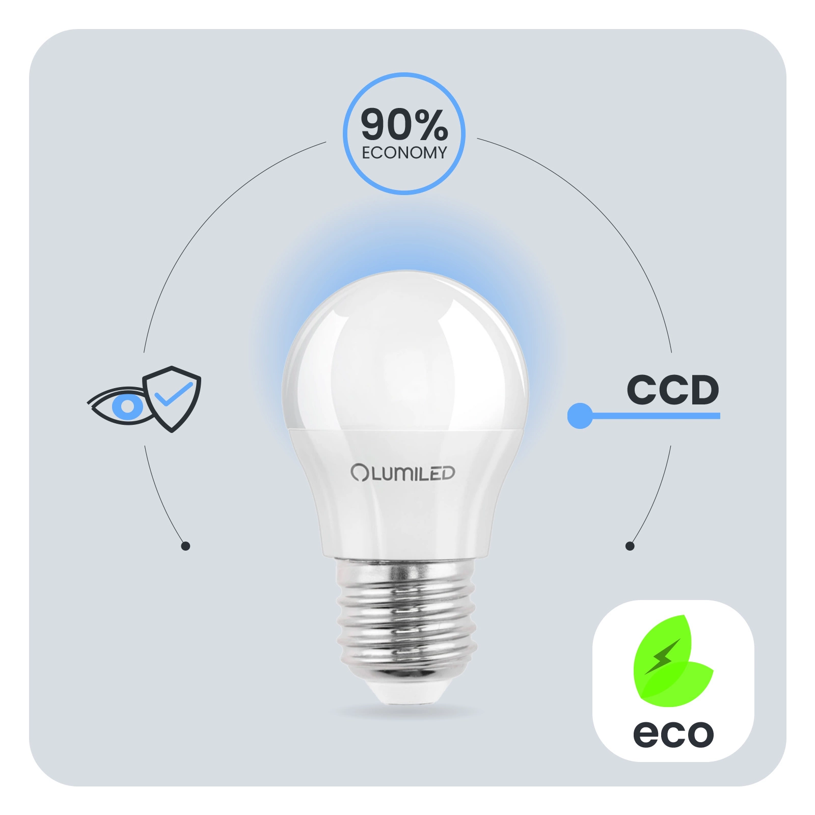 Der in der LED-Glühbirne verwendete CCD-Inverter macht die Glühbirne widerstandsfähig gegen Einbrüche und Spitzen in der Netzspannung. Das Licht flackert und zittert nicht. Der CCD-Konverter sorgt dafür, dass die Glühbirne über einen langen Zeitraum hinweg einwandfrei funktioniert. Bei der Entwicklung der LUMILED-Glühbirnen wurde an den Benutzer gedacht. Eine schlechte Beleuchtungsqualität kann zur Ermüdung der Augen führen. Deshalb verfügen unsere Lampen über die technische Entwicklung Eye Safe, um in jedem Raum eine angenehme und augenfreundliche Beleuchtung zu gewährleisten.