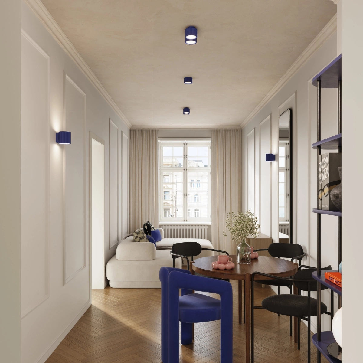 Wir stellen Ihnen die Anbauleuchte Aura vor, eine Leuchte, die mit ihrem modernen und geometrischen Design die Atmosphäre Ihres Interieurs verändern wird. Aus hochwertigem Aluminium gefertigt, zeichnet sich die Leuchte durch ihre Stärke und Eleganz aus. Ihre einzigartige Form und die markante geriffelte Oberfläche in Ultramarinblau ziehen nicht nur die Blicke auf sich, sondern passen auch perfekt in minimalistische, skandinavische oder moderne Interieurs. Sie ist die perfekte Wahl für Räume wie das Wohnzimmer, das Schlafzimmer oder den Flur.