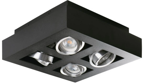 Der LED-Strahler STOBI ist eine Serie schwarzer LED-Deckenleuchten der Marke KANLUX mit modernem Look, die Ihr Interieur dezent mit Licht hervorheben. Hergestellt aus einer hochwertigen Aluminiumlegierung. Die Leuchte ist für den Betrieb mit energiesparenden LED-Lichtquellen mit einem 4xGU10- Gewinde und einer maximalen Leistung von nicht mehr als 4x25W ausgelegt. Der Austausch der Lichtquelle ist relativ einfach, sodass Sie die Leistung und Farbe der Lichtquelle Ihren Bedürfnissen entsprechend anpassen können. Die Leuchte ist für die Montage von unten auf einer festen Oberfläche konzipiert und stellt eine elegante Ergänzung für jede Inneneinrichtung dar. Ein zusätzlicher Vorteil der Leuchte ist die Winkelverstellung der Leuchte in zwei Achsen . Winkelverstellung des Beleuchtungskörpers 65/45°. Produkt nicht für die Abdeckung mit Wärmedämmstoff geeignet.
