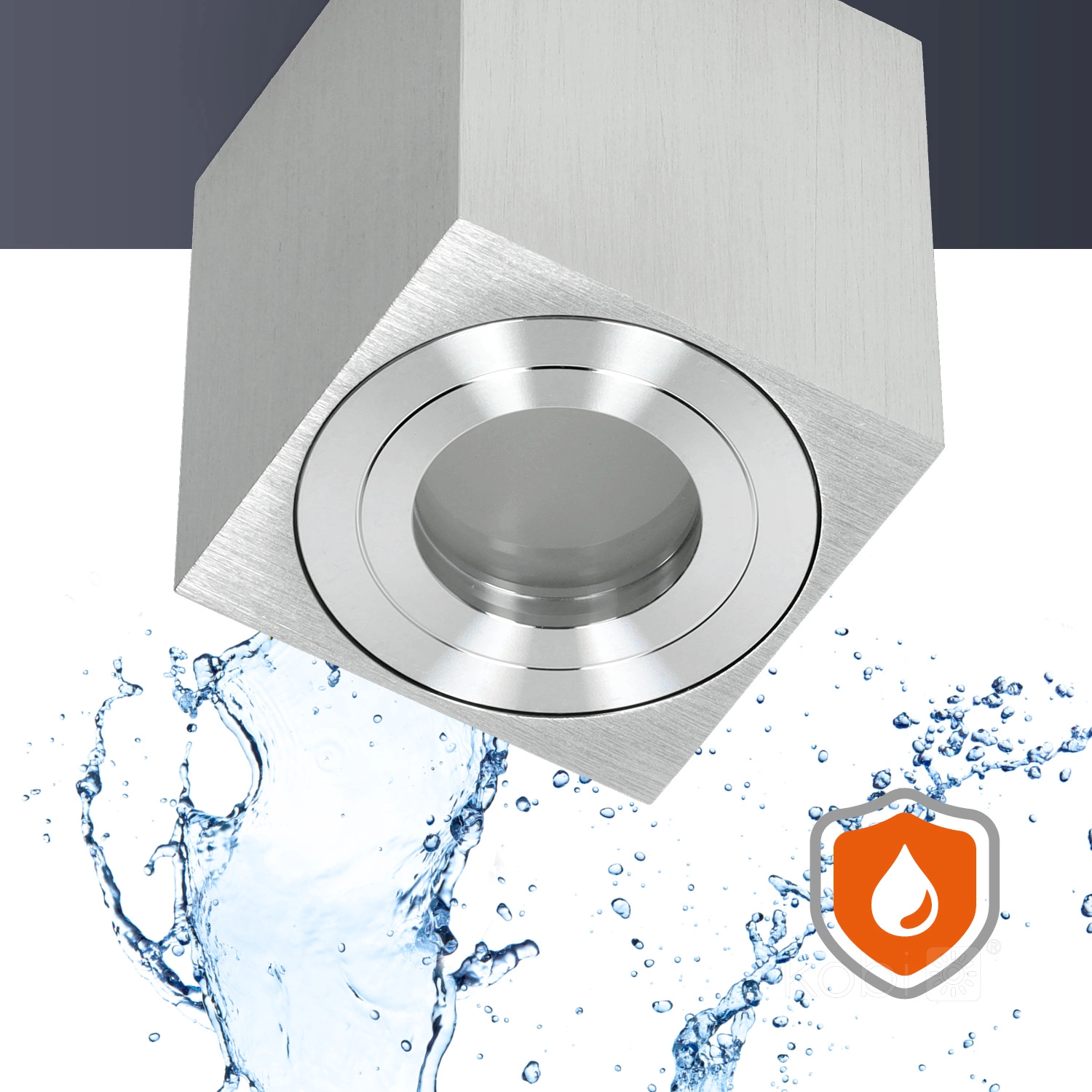 AQUARIUS SQUARE Deckenleuchte zur Aufputzmontage. Die Spotleuchte AQUARIUS SQUARE von Kobi funktioniert dank der Dichtheitsklasse IP44 gut an Orten mit erhöhter Luftfeuchtigkeit . Darüber hinaus besteht sie aus Aluminium und ist chromfarben. Die moderne Form der Leuchte verleiht Ihrem Interieur einen neuen, modernen Charakter und dank der im Set enthaltenen GU10- Fassung können Sie problemlos eine LICHTquelle darin installieren.