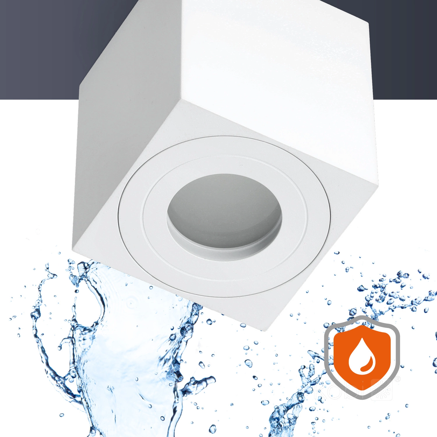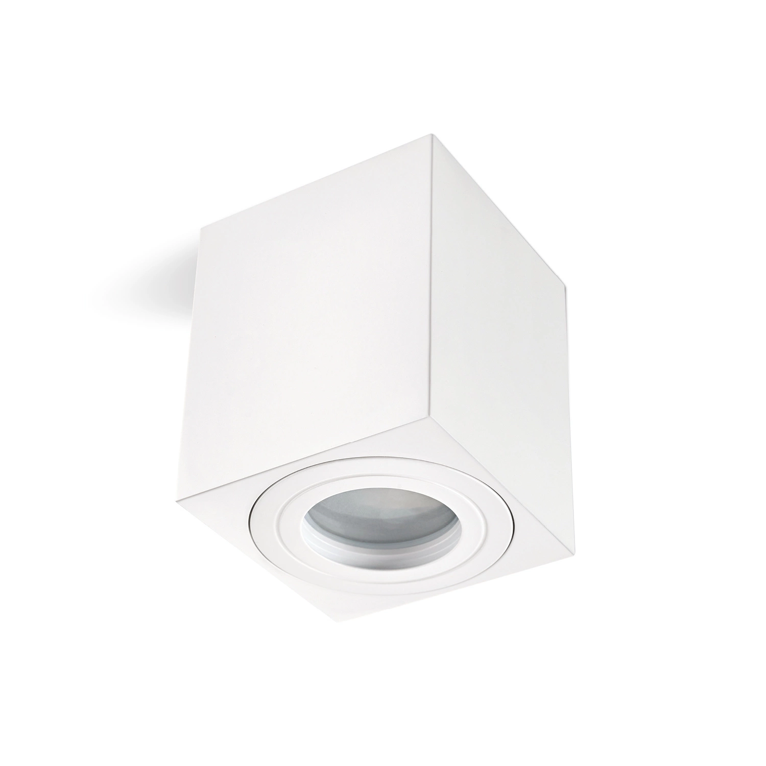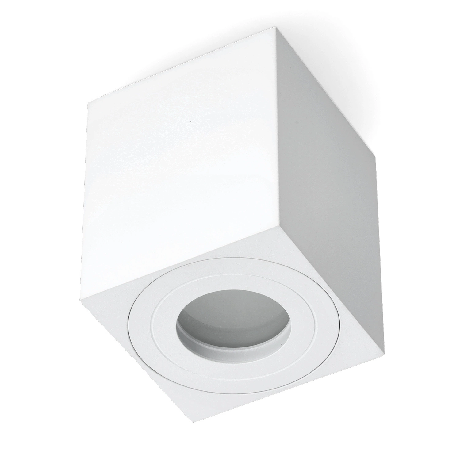 AQUARIUS SQUARE Deckenleuchte zur Aufputzmontage. Die Spotleuchte AQUARIUS SQUARE von Kobi eignet sich dank der Dichtheitsklasse IP44 gut für Orte mit erhöhter Luftfeuchtigkeit und ist aus Aluminium gefertigt und weiß lackiert. Die moderne Form der Leuchte verleiht Ihrem Interieur einen neuen, modernen Charakter und dank der im Set enthaltenen GU10- Fassung können Sie problemlos eine LICHTquelle darin installieren.