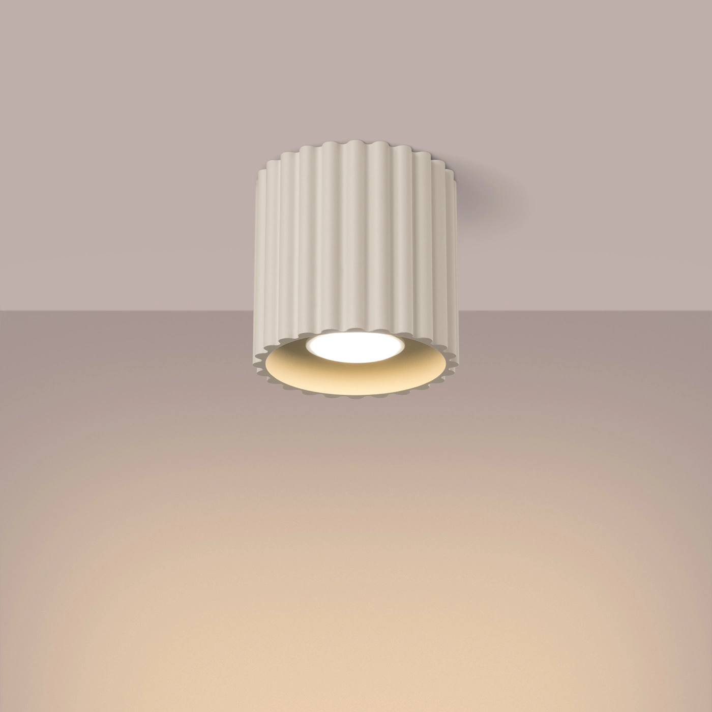 - Elegantes Design: Die beigefarbene, geriffelte Form der Leuchte passt perfekt in moderne und minimalistische Innenräume.