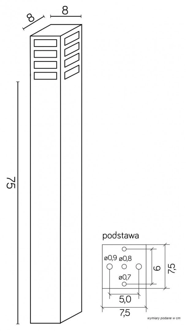 Der 75 cm hohe Gartenpfosten der RADO-Serie von SU-MA ist aus hochwertigem Aluminium gefertigt und mit einer dunklen Esche-Pulverbeschichtung mit halbmatter Struktur überzogen. Der Lampenschirm besteht aus satiniertem Acrylglas, das gegen äußere Einflüsse beständig ist. Dank sorgfältiger Verarbeitung und der Verwendung hochwertigster Materialien wirkt die Lampe äußerst elegant. Wenn Sie es in Ihrem Garten installieren, können Sie sicher sein, dass es trotz wechselnder Wetterbedingungen viele Jahre lang voll funktionsfähig bleibt und perfekt aussieht. Die Lichtquelle in der vorgestellten Gartenleuchte ist eine E27-Glühbirne (nicht im Lieferumfang enthalten) . Aufgrund des geringen Energieverbrauchs und der hohen Lichtausbeute ist es am besten, sich für eine LED-Lampe zu entscheiden . Dank der Möglichkeit, die Lichtquelle auszutauschen, können wir die Leistung und Farbe der Lichtquelle an unsere Bedürfnisse und Vorlieben anpassen.