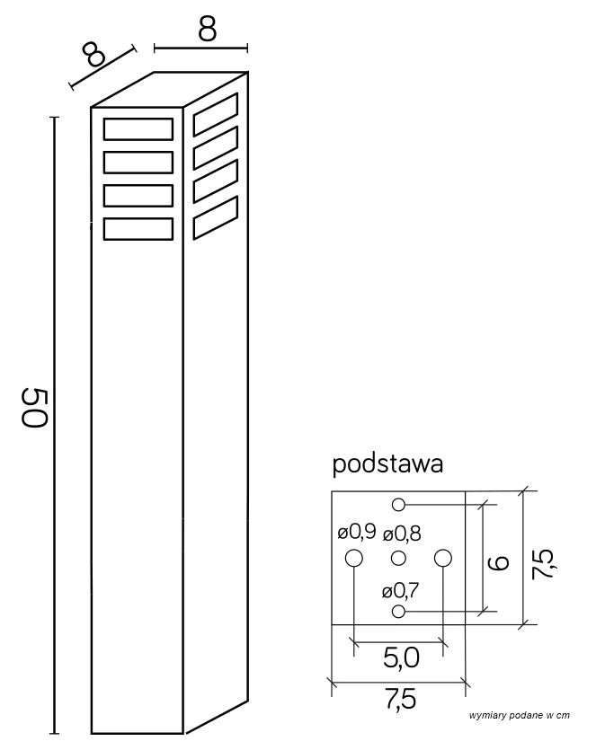 Der 50 cm hohe Gartenpfosten der RADO-Serie von SU-MA besteht aus hochwertigem Aluminium, das mit silbernem Pulverlack mit halbmatter Struktur überzogen ist. Der Lampenschirm besteht aus satiniertem Acrylglas, das gegen äußere Einflüsse beständig ist. Dank sorgfältiger Verarbeitung und der Verwendung hochwertigster Materialien wirkt die Lampe äußerst elegant. Wenn Sie es in Ihrem Garten installieren, können Sie sicher sein, dass es trotz wechselnder Wetterbedingungen viele Jahre lang voll funktionsfähig bleibt und perfekt aussieht. Die Lichtquelle in der vorgestellten Gartenleuchte ist eine E27-Glühbirne (nicht im Lieferumfang enthalten) . Aufgrund des geringen Energieverbrauchs und der hohen Lichtausbeute ist es am besten, sich für eine LED-Lampe zu entscheiden . Dank der Möglichkeit, die Lichtquelle auszutauschen, können wir die Leistung und Farbe der Lichtquelle an unsere Bedürfnisse und Vorlieben anpassen.