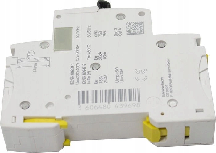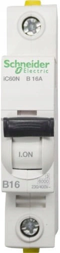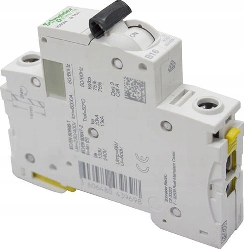 Leistungsschalter der Serie iC60N , Nummer A9F03116, iC60N-B16-1, 1-polig (einpolig), 16A, B-Charakteristik , Kurzschlussfestigkeit 6kA , bietet Schutz vor Kurzschlüssen und Überlastungen. Möglichkeit, zwei Kabel mit unterschiedlichen Querschnitten direkt anzuschließen. Optische Visi-Trip-Anzeige für elektrische Auslösung, weiß und rot. Möglichkeit der Demontage eines einzelnen Gerätes, ohne dass die Verbindungsschiene entfernt werden muss. Werkzeuglose Demontage von der DIN-Schiene . Seine Beschränkungsklasse 3 (gemäß EN/IEC60898-1) verbessert die Kosten für den Schutz des nachgeschalteten Stromkreises. Der einzigartige Visitrip-Indikator verkürzt die Eingriffszeit, indem er den fehlerhaften Stromkreis anzeigt.