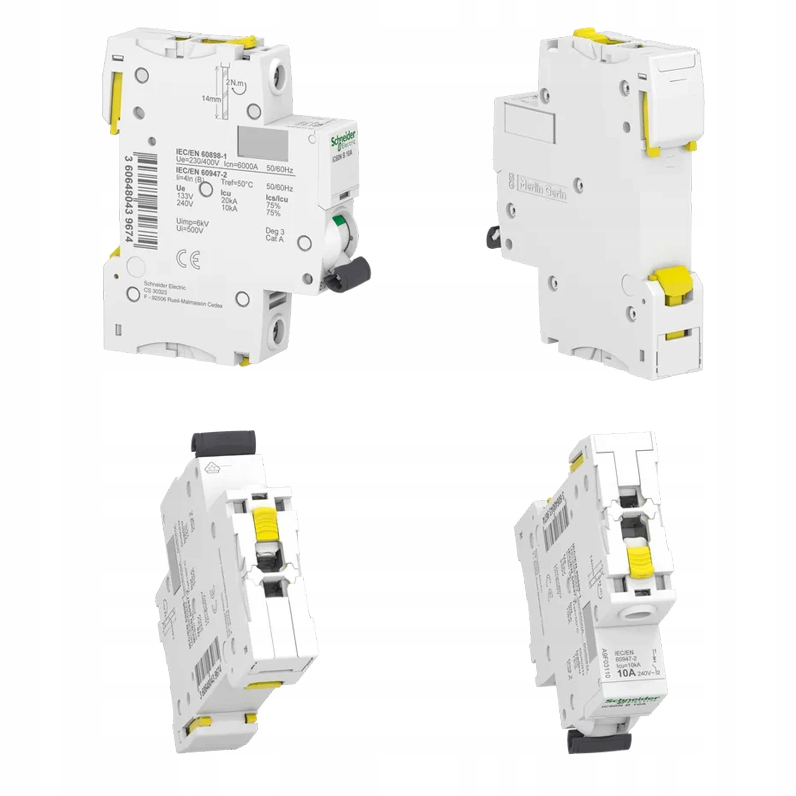 Leistungsschalter der Serie iC60N , Nummer A9F03132, iC60N-B32-1, 1-polig (einpolig), 32A, B-Charakteristik , Kurzschlussfestigkeit 6kA , bietet Schutz vor Kurzschlüssen und Überlastungen. Möglichkeit, zwei Kabel mit unterschiedlichen Querschnitten direkt anzuschließen. Optische Visi-Trip-Anzeige für elektrische Auslösung, weiß und rot. Möglichkeit der Demontage eines einzelnen Gerätes, ohne dass die Verbindungsschiene entfernt werden muss. Werkzeuglose Demontage von der DIN-Schiene . Seine Beschränkungsklasse 3 (gemäß EN/IEC60898-1) verbessert die Kosten für den Schutz des nachgeschalteten Stromkreises. Der einzigartige Visitrip-Indikator verkürzt die Eingriffszeit, indem er den fehlerhaften Stromkreis anzeigt.