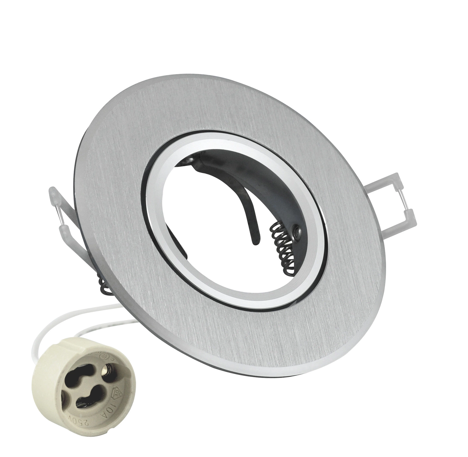 Runde bewegliche Deckenleuchte aus der WEST OPAL- Serie von Goldlux . Die Leuchte ist für die flächenbündige Montage vorgesehen, besteht aus einer hochwertigen Aluminiumlegierung und kann auf einen Lichteinfallswinkel von bis zu 30° eingestellt werden . Es ist für LED-Leuchtmittel mit GU10-Sockel und einer maximalen Lampennennleistung von 8 W vorgesehen . Die silbergebürstete Farbe und der moderne Stil garantieren, dass die Leuchte nicht nur großartig aussieht, sondern auch in jede Einrichtung, Dekoration oder jeden Raum passt. Zusätzlich wird der Leuchte eine Keramikfassung hinzugefügt.