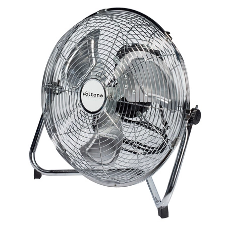 Tragbarer Bodenzirkulator der bekannten und renommierten Marke VOLTENO auf dem Beleuchtungsmarkt, chromfarben , mit einem Durchmesser von 40 cm und einer Leistung von 65 W , perfekt für heiße Tage, sorgt für Kühlung