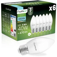 6x LED Lampen E27, Glühbirne B35 5W = 40W 470lm 180° 6500K kalt LUMILED