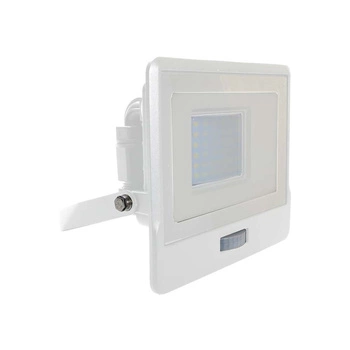 AusverkauftLED Fluter 30W 2340lm 3000K IP65 Weiß mit Muff, Bewegungssensor und CUT-OFF-Funktion Samsung Chip VT-138S-W V-TAC