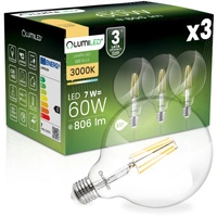 3x LED-Lampe E27 Sphere G125 7W = 60W 806lm 3000K Warm 360° FILAMENT LUMILED