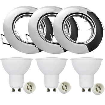 Set aus 3x beweglicher Halogenlampe GOLDLUX (Polux), rund, Chrom + GU10 3,5W LED Lampen
