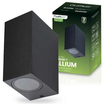 Wandleuchte Außen 2x GU10, Garten-Wandleuchte Schwarz Quadratisch ALLIUM LUMILED