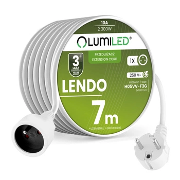 Netzverlängerungskabel Geerdete Steckdosenleiste 1 Steckdose 7m Weißes Kabel Lendo Lumiled