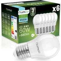 6x LED-Lampe E27 Kugel P45 8W = 60W 880lm 6500K kaltweiß 180° LUMILED