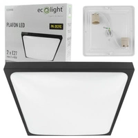 LED Plafond Deckenleuchte 2x E27 Schwarz Quadratisch Ecolight