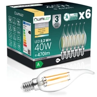 6x LED-Lampe E14 Kerze BA35 2,2W 470lm = 40W 2700K warmweiß 360° Glühfaden Energieklasse A LUMILED