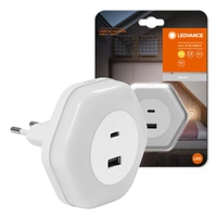 LED-Nachtlicht mit USB-A USB-C-Stecker zu Buchse 15W 4lm 3000K Warm mit Dämmerungssensor Weiß Lunetta Ledvance