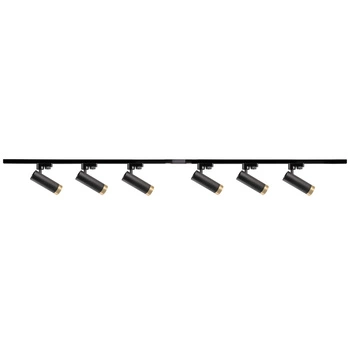 Stromschienen-Kit 1-Phasen-Schiene + 6x GU10 Reflektor Schwarz FADO Sanico Goldlux