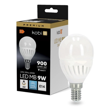 LED-Lampe E14 Ball 9W 900lm 6000K Kalt 200° Premium Kobi