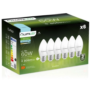 Ausverkauft6x LED Lampen E27, Glühbirne B35 8W = 60W 806lm 180° 4000K neutral LUMILED