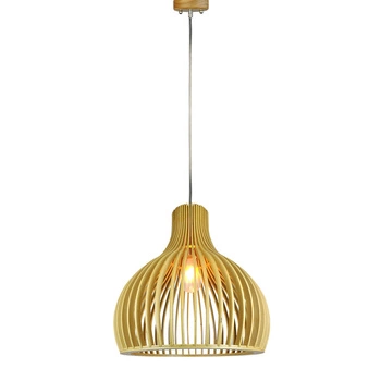 Hängeleuchte E27 Holzschirm mit Chrom Finish konisch 350x310mm VT-3350 V-TAC