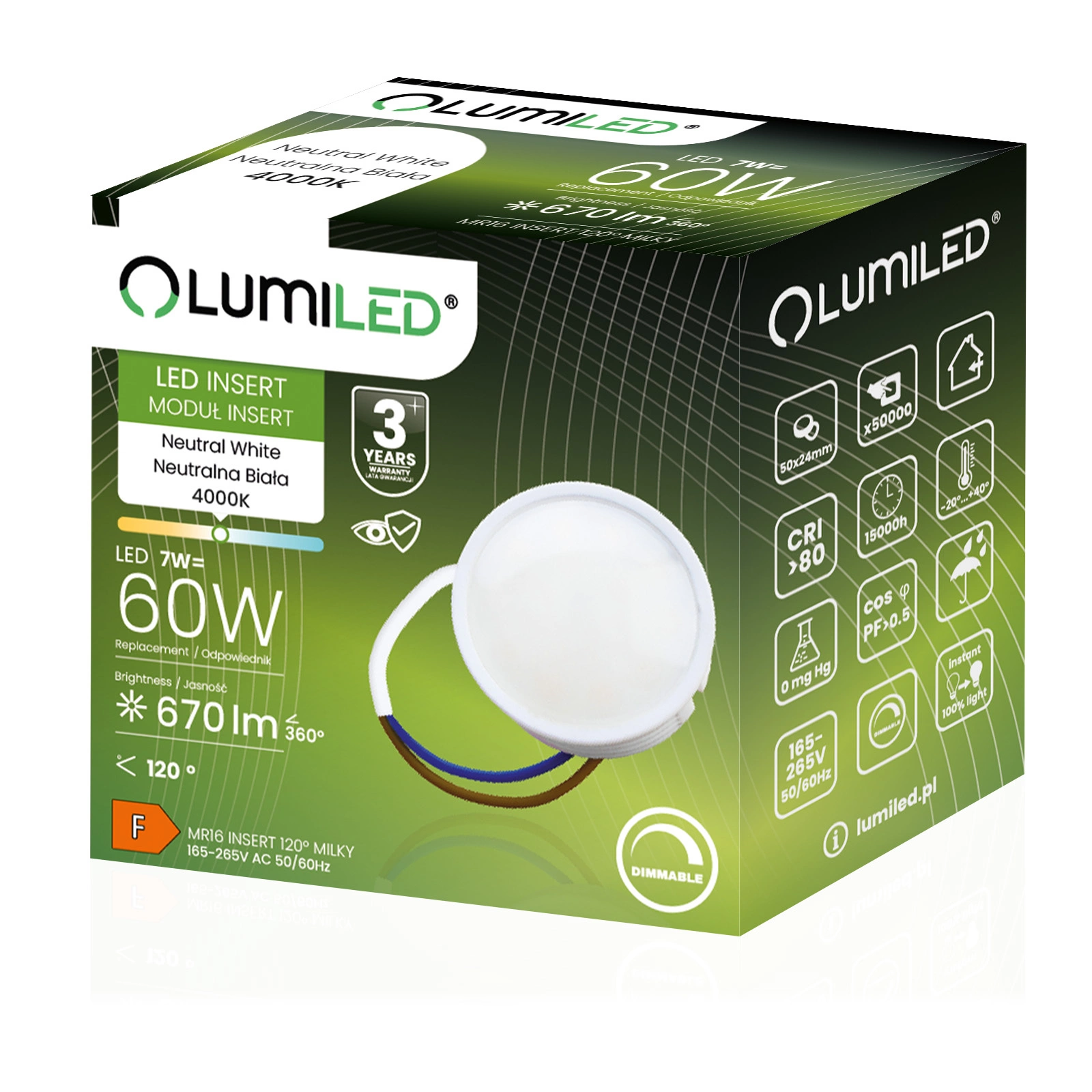 Die 7W-LED-Glühbirne der renommierten Marke LUMILED ist ein hervorragender Ersatz für herkömmliche 60W-Glühbirnen und bietet Energieeinsparungen und eine längere Lebensdauer. Sie strahlt Licht mit einem Lichtstrom von 670 Lumen und einer neutralen Farbe von 4000K aus und ist damit ideal für die Innenbeleuchtung, wo eine helle und natürliche Lichtfarbe gewünscht wird. Der Abstrahlwinkel von 120° sorgt für eine breite Lichtstreuung und eine effektive Ausleuchtung des Raumes. Dank ihrer hochwertigen Verarbeitung hat sie eine Lebensdauer von bis zu 15.000 Stunden, was einer langjährigen Nutzung entspricht. Zudem arbeitet sie in einem weiten Spannungsbereich von 165-265 V und ist für den Einsatz bei Umgebungstemperaturen von -20°C bis +40°C geeignet. Eine ideale Wahl für alle, die Wert auf Energieeinsparung und Umweltschutz legen.
