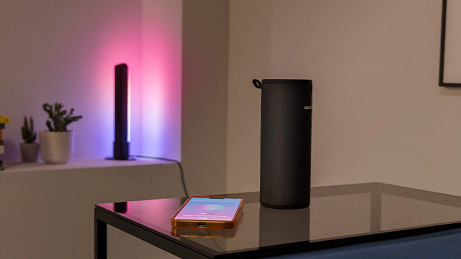 Tauchen Sie in den Rhythmus ein und lassen Sie das Licht im Takt der Musik tanzen. Mit der Musiksynchronisationsfunktion pulsiert Ihre Beleuchtung und ändert die Farben in Echtzeit, um sich dem Tempo und der Atmosphäre der Songs anzupassen. Das ist die perfekte Art, eine besondere Stimmung zu erzeugen - auf einer Party, zur Entspannung oder bei einem Hauskonzert. Alles, was Sie tun müssen, ist Ihr Smartphone in die Nähe des Lautsprechers zu halten, und das WiZ-System synchronisiert den Ton mit dem Licht selbst - ohne Kabel, Mikrofone oder komplizierte Konfiguration.