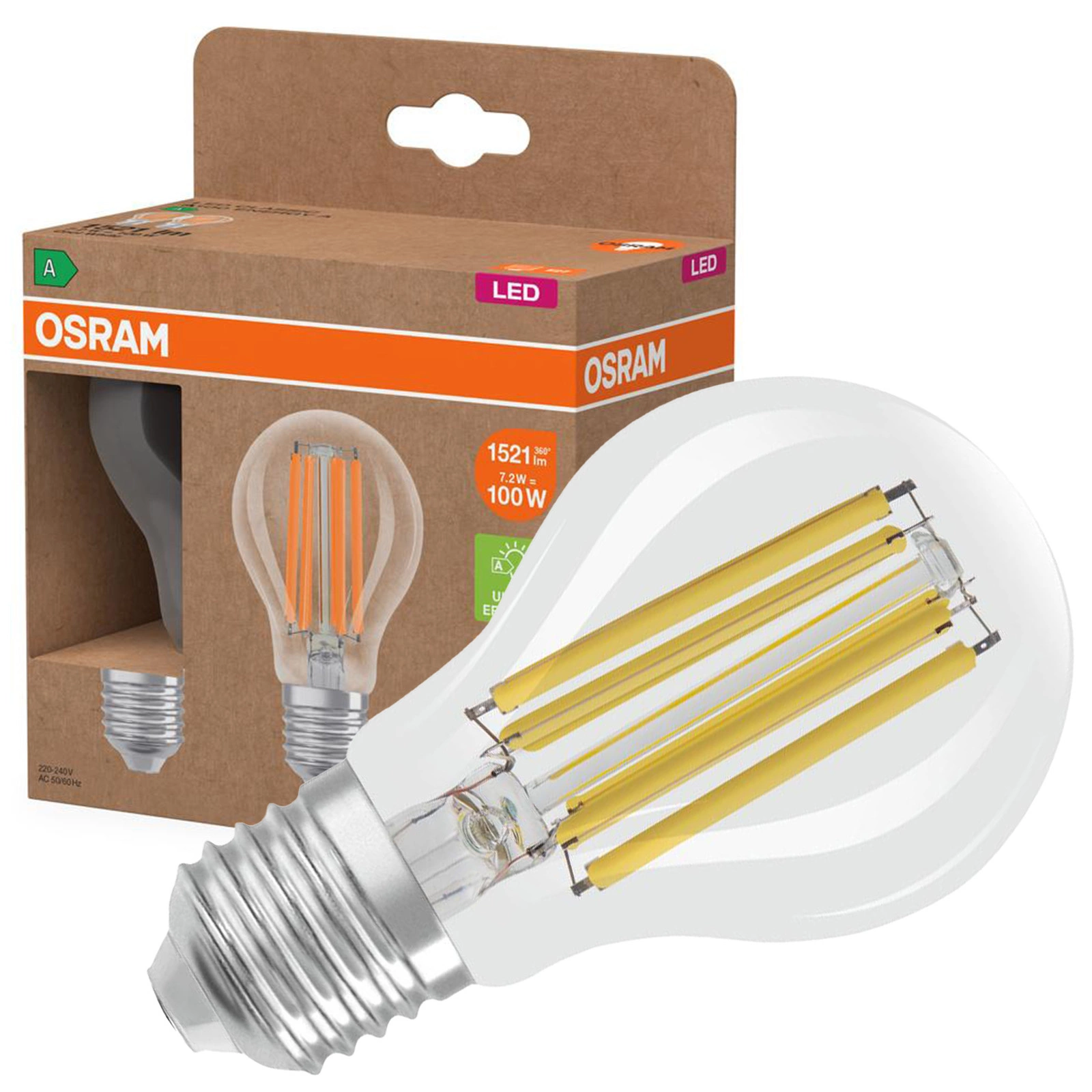 2x LED-Glühbirne A60 E27 7.2W = 100W 1521lm 4000K Neutral 320° Filament CLASSIC ENERGY EFFICIENCY Osram
