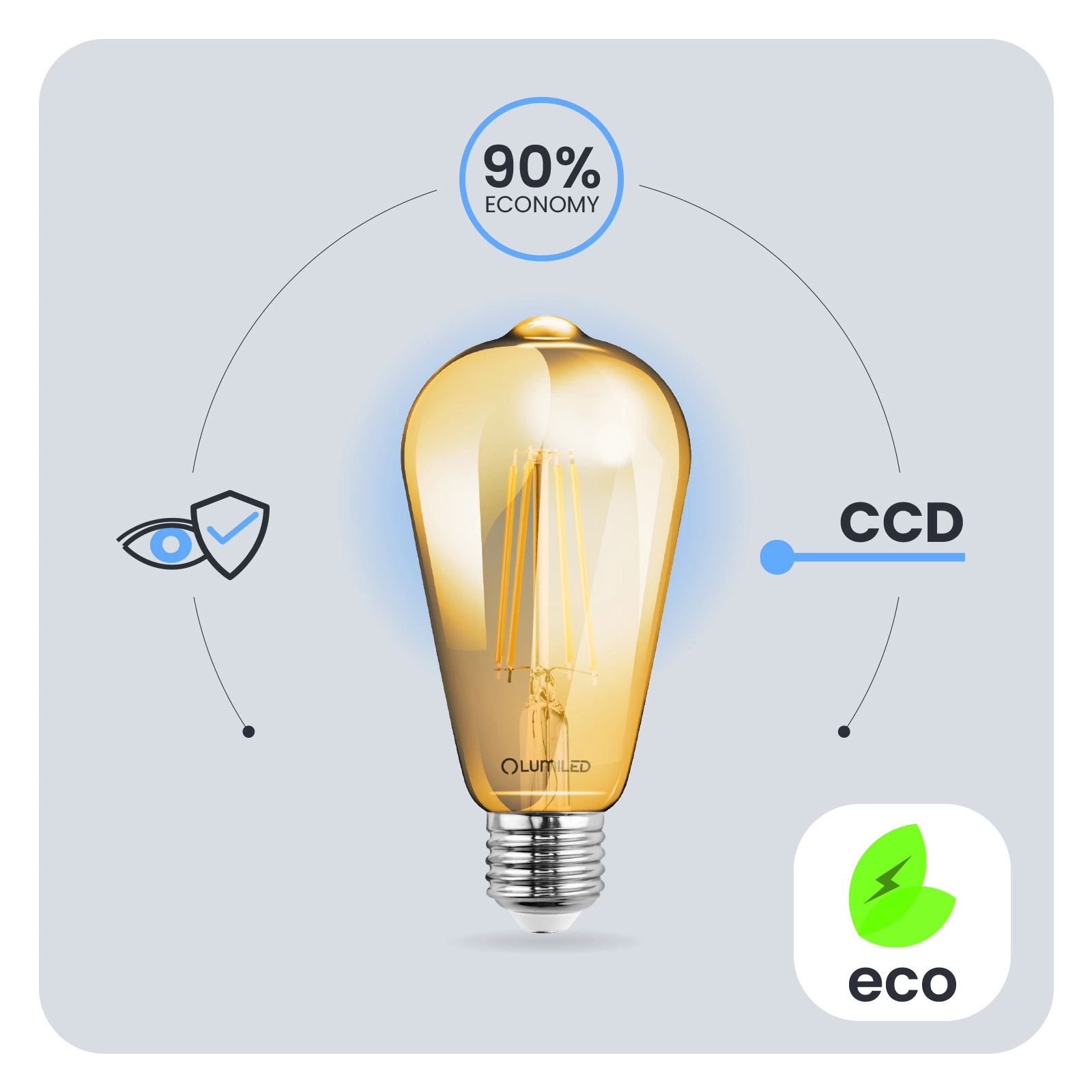 Der in der LED-Glühbirne verwendete CCD-Inverter macht die Glühbirne widerstandsfähig gegen Einbrüche und Spitzen in der Netzspannung. Das Licht flackert und zittert nicht. Der CCD-Konverter sorgt dafür, dass die Glühbirne über einen langen Zeitraum hinweg einwandfrei funktioniert. Bei der Entwicklung der LUMILED-Glühbirnen wurde an den Benutzer gedacht. Eine schlechte Beleuchtungsqualität kann zur Ermüdung der Augen führen. Deshalb verfügen unsere Lampen über die technische Entwicklung Eye Safe, um in jedem Raum eine angenehme und augenfreundliche Beleuchtung zu gewährleisten.