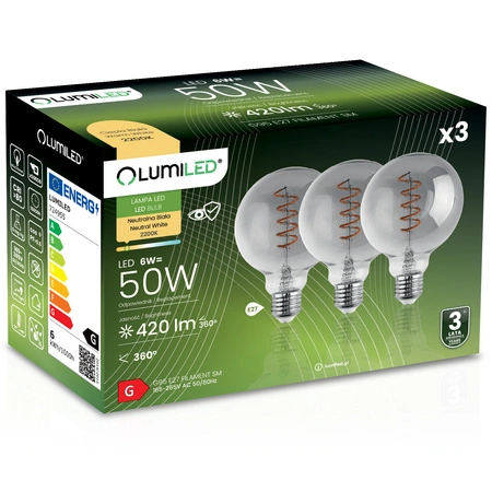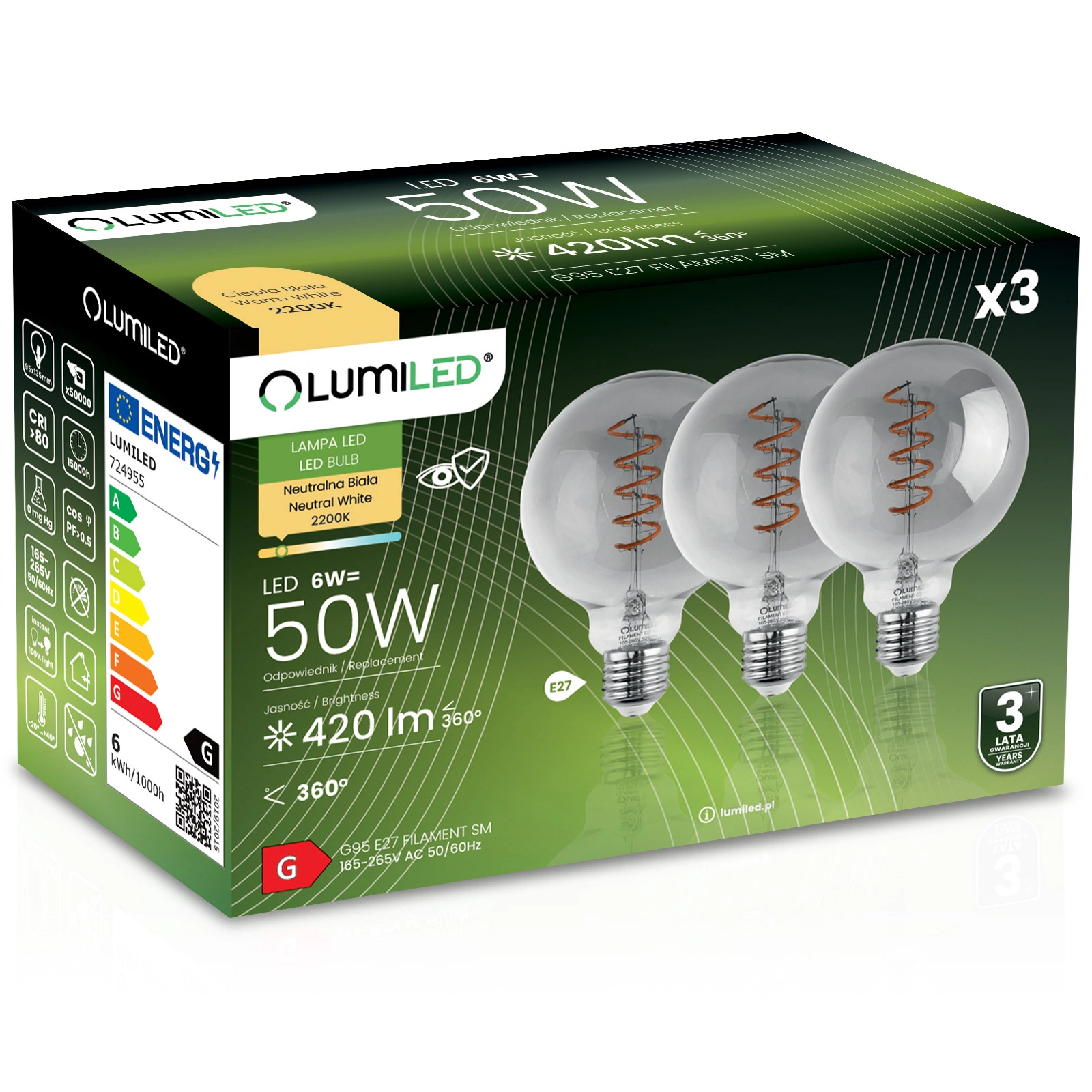 3x LED-Glühbirne E27 Sphere G95 6W = 50W Dekorativ 360° LUMILED